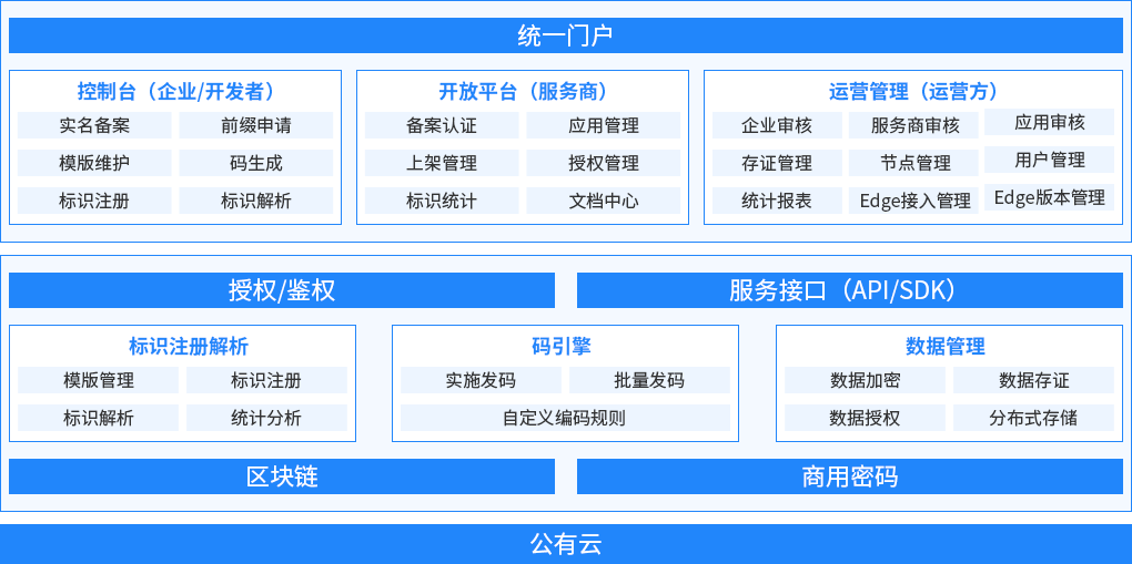 码引擎是浪潮云基于自身云计算、大数据、区块链能力打造的标识统一发验产品,可以快速为各类政务、企业应用提供基于自身业务的标识发放、查验能力,同时兼容国家工业互联网标识解析体系,能低成本打通多应用间标识通识和基于标识的数据可信共享交换